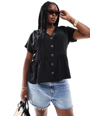 Tops by ASOS Curve Waist-up dressing V-neck Button placket Peplum hem Regular fit