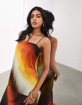 Tops by ASOS EDITION Can't top this Ombre design Square neck Tie straps Button-keyhole back Regular fit