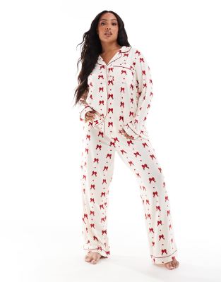 Lingerie & Nightwear by Chelsea Peers Exclusive to ASOS Includes a shirt and trousers Regular-fit shirt Revere collar Button placket Long sleeves Chest pocket Straight-leg trousers Elasticated waistband
