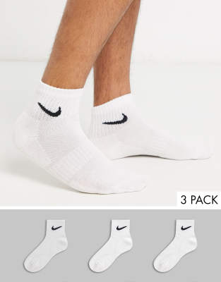 Socks multipack by Nike This item is excluded from promo Pack of three pairs Ribbed cuffs Ankle cut Nike Swoosh detail