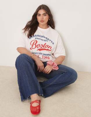 Tops by ASOS Curve Crew neck Drop shoulders Graphic print to front Oversized fit