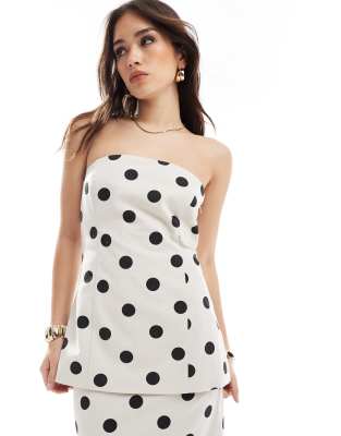 Tops by 4th & Reckless Part of a co-ord set Skirt sold separately Polka-dot print Bandeau style Zip-side fastening Regular fit