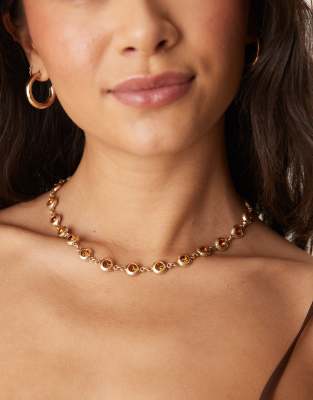Accessories by ASOS DESIGN Chunky chain Faux-stone embellishment Brushed finish Adjustable length Lobster clasp
