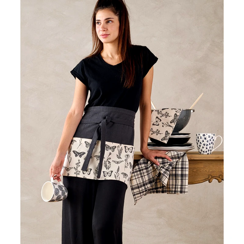Ποδιά κουζινας σε μαύρο χρώμα με μοντέρνο σχέδιο. Κατασκευασμένη από 100% βαμβάκι που την καθιστά απαλή και ανθεκτική. Συνδυάστε με το υπόλοιπο σετ για ένα ολοκληρωμένο αποτέλεσμα.