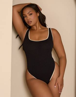 Swimwear & Beachwear by Moda Minx Collaboration with Bernadette Afia Scoop neck Contrast trims Low scoop back High-cut leg
