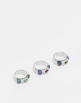 Accessories by Reclaimed Vintage For your ring rotation Pack of three Crystal embellishments Chunky band Smooth finish