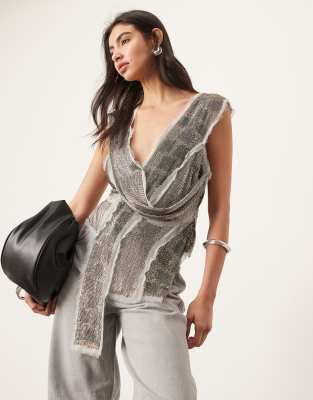 Tops by ASOS EDITION Date-night worthy V-neck Draped design Zip-back fastening Raw-cut trims Regular fit