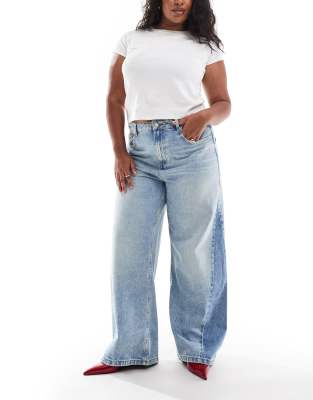Jeans by ASOS Curve Introducing: the perfect pair Dad fit Patchwork detail High rise Belt loops Adjustable waist Functional pockets