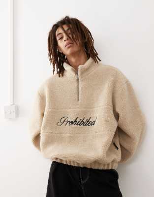 Επισκέψου το κατάστημα Asos για να δεις περισσότερες λεπτομέρειες και φωτογραφίες για το Prohibited half-zip borg sweatshirt with script logo detail in cream-White. Για αγορά του Prohibited half-zip borg sweatshirt with script logo detail in cream-White πρέπει να επισκεφτείς το κατάστημα Asos.