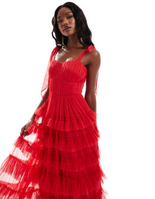 Dresses by Lace & Beads When the dress code means a dress Sweetheart neck Ruched bodice Tie straps Fitted waist Tiered skirt Ruffle trims Zip-back fastening Regular fit