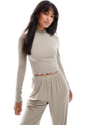 Lingerie & Nightwear by Loungeable Includes a T-shirt and trousers Regular-fit T-shirt High neck Long sleeves Lettuce-edge trims Wide-leg trousers Elasticated waistband Faux-button placket
