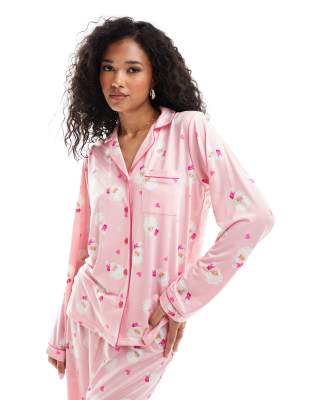 Lingerie & Nightwear by Loungeable Includes a shirt and trousers All-over print Regular-fit shirt Revere collar Button placket Long sleeves Chest pocket Wide-leg trousers Elasticated waistband