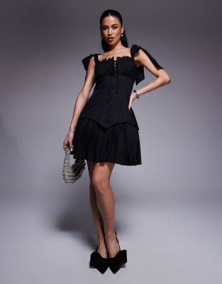Dresses by ASOS LUXE Square neck Tie straps Ruched bust Pleated skirt Regular fit