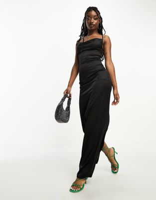 Επισκέψου το κατάστημα Asos για να δεις περισσότερες λεπτομέρειες και φωτογραφίες για το NaaNaa satin cowl neck maxi dress with tie back detail in black. Για αγορά του NaaNaa satin cowl neck maxi dress with tie back detail in black πρέπει να επισκεφτείς το κατάστημα Asos.