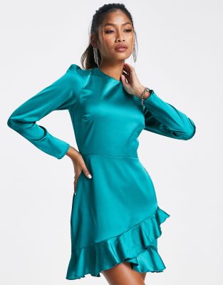 Επισκέψου το κατάστημα Asos για να δεις περισσότερες λεπτομέρειες και φωτογραφίες για το Flounce London satin long sleeve wrap mini dress in emerald green. Για αγορά του Flounce London satin long sleeve wrap mini dress in emerald green πρέπει να επισκεφτείς το κατάστημα Asos.