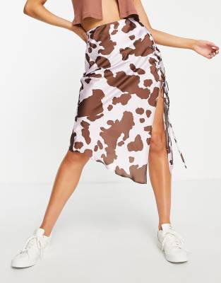 Midi skirt by ASOS DESIGN Next stop: checkout Cow print High rise Lace-up side Regular fit