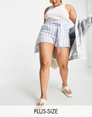 Shorts by In The Style Plus Collaboration with influencer Stacey Solomon Stripe design High rise Tie waist Functional pockets Regular fit