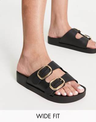 Επισκέψου το κατάστημα Asos για να δεις περισσότερες λεπτομέρειες και φωτογραφίες για το London Rebel Wide Fit double buckle footbed sandals in black. Για αγορά του London Rebel Wide Fit double buckle footbed sandals in black πρέπει να επισκεφτείς το κατάστημα Asos.