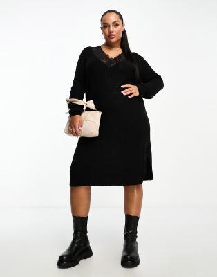 Επισκέψου το κατάστημα Asos για να δεις περισσότερες λεπτομέρειες και φωτογραφίες για το Vila Curve v neck knitted jumper midi dress with lace detail in black. Για αγορά του Vila Curve v neck knitted jumper midi dress with lace detail in black πρέπει να επισκεφτείς το κατάστημα Asos.