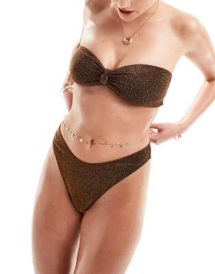 Swimwear & Beachwear by The Frolic Glitter finish Bandeau style Non-padded cups Knot detail Pull-on style