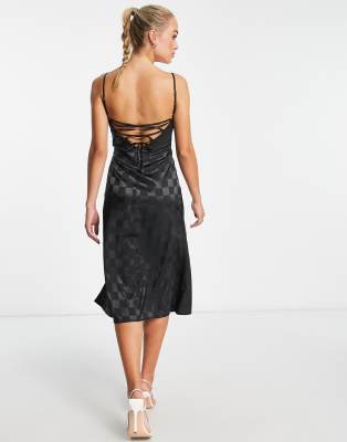 Επισκέψου το κατάστημα Asos για να δεις περισσότερες λεπτομέρειες και φωτογραφίες για το Lola May satin cross back midi dress in black diamond print. Για αγορά του Lola May satin cross back midi dress in black diamond print πρέπει να επισκεφτείς το κατάστημα Asos.