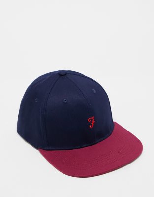 Caps by Farah Put a lid on it Panelled crown Eyelets for ventilation Logo embroidery Flat peak Adjustable buckle strap