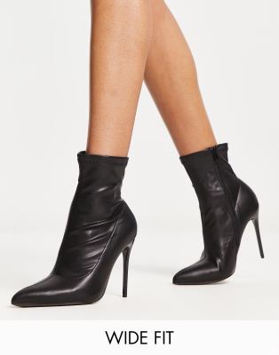 Shoes by Truffle Collection Wide Fit Good things come in pairs Zip-side fastening Sock-like cuff Pointed toe Stiletto heel Wide fit