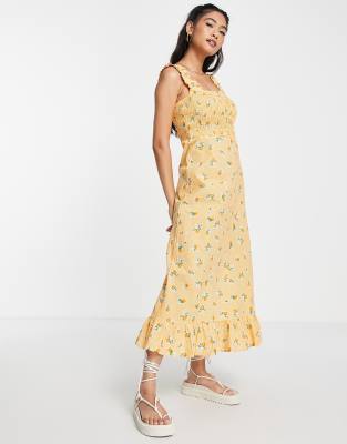Midi dress by Y.A.S Love at first scroll Checked design All-over floral print Square neck Shirred bodice Frill trims Regular fit