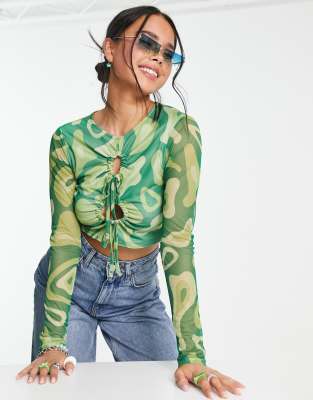 Επισκέψου το κατάστημα Asos για να δεις περισσότερες λεπτομέρειες και φωτογραφίες για το Another Reason cut out mesh crop top in green abstract graphic. Για αγορά του Another Reason cut out mesh crop top in green abstract graphic πρέπει να επισκεφτείς το κατάστημα Asos.