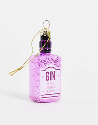 Bauble by Typo It's that time of year Tree decoration Gin bottle design Glitter embellishment Slogan print Hanging loop Drink responsibly people