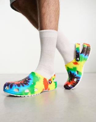 Shoes by Crocs Good things come in pairs Tie-dye design Slip-on style Hinged heel strap for a secure fit Signature Crocs branding Breathable ventilation ports help water and debris drain away Croslite footbed moulds to your foot for a custom fit and improved arch support Lightweight non-marking sole Sizing displayed on the bottom of all Crocs is in US sizing Please follow our UK sizing for the correct fit
