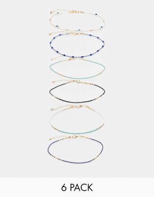 Accessories by ASOS DESIGN Worth the attention Pack of six Beaded chain Adjustable length Lobster clasp