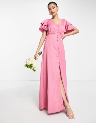 Επισκέψου το κατάστημα Asos για να δεις περισσότερες λεπτομέρειες και φωτογραφίες για το Little Mistress Bridesmaid satin maxi dress with flutter sleeves in dark pink. Για αγορά του Little Mistress Bridesmaid satin maxi dress with flutter sleeves in dark pink πρέπει να επισκεφτείς το κατάστημα Asos.