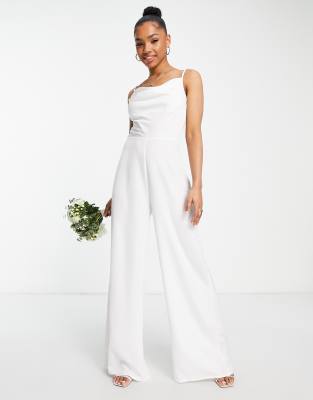 Jumpsuit by Little Mistress Marriage material Cowl neck Adjustable straps Zip-back fastening Wide leg Regular fit