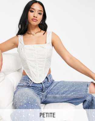 Petite corset top by I Saw It First Love at first scroll All-over zebra print Corset style Square neck Zip-back fastening Boning to front Cropped length Slim fit