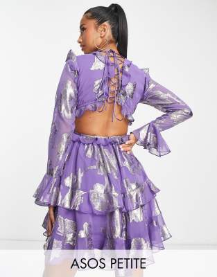 Επισκέψου το κατάστημα Asos για να δεις περισσότερες λεπτομέρειες και φωτογραφίες για το ASOS DESIGN Petite tiered ruffle floral jaquard mini dress with ruffle detail skirt in purple-Blue. Για αγορά του ASOS DESIGN Petite tiered ruffle floral jaquard mini dress with ruffle detail skirt in purple-Blue πρέπει να επισκεφτείς το κατάστημα Asos.