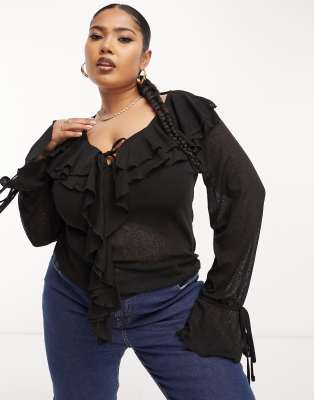 Tops by River Island Plus Introduce it to your other nice tops Scoop neck Frill details Tie front Regular fit
