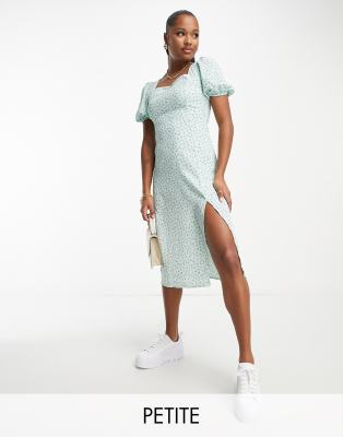 Petite by Glamorous Petite Daywear dressing done right Square neck Puff sleeves Zip-back fastening Thigh-high split Slim fit