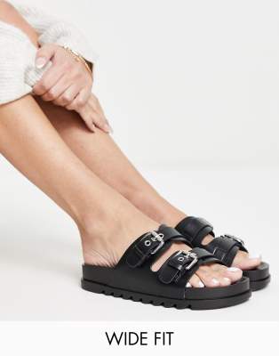 Shoes by Glamorous Wide Fit It’s open-toe season Adjustable straps Pin-buckle fastening Open toe Flat sole Wide fit