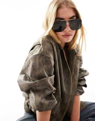 Accessories by ASOS DESIGN Sun's out shades on Aviator frames Brow bar detail Adjustable silicone nose pads Dark-tinted lenses Metal arms
