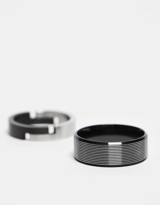 Jewellery by ASOS DESIGN Pack of two Slim and chunky bands Silver-tone detailing You can shower swim and work out with me
