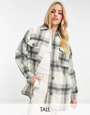 Coats & Jackets by New Look Tall Low-key layering Check design Spread collar Button placket Chest pockets Longline cut Relaxed fit
