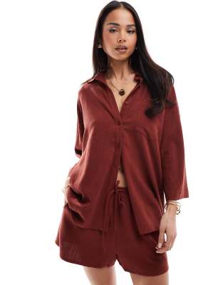Επισκέψου το κατάστημα Asos για να δεις περισσότερες λεπτομέρειες και φωτογραφίες για το 4th & Reckless beach linen blend wide sleeve shirt co-ord in rust-Orange. Για αγορά του 4th & Reckless beach linen blend wide sleeve shirt co-ord in rust-Orange πρέπει να επισκεφτείς το κατάστημα Asos.