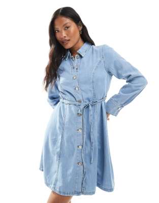 Dresses by JDY Petite Spread collar Button-through front Long sleeves Tie waist Regular fit