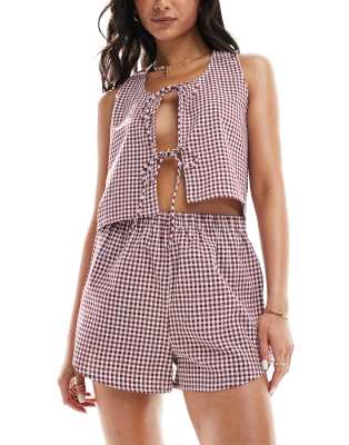 Επισκέψου το κατάστημα Asos για να δεις περισσότερες λεπτομέρειες και φωτογραφίες για το Luna gingham vest and short pyjama set in maroon gingham-Red. Για αγορά του Luna gingham vest and short pyjama set in maroon gingham-Red πρέπει να επισκεφτείς το κατάστημα Asos.