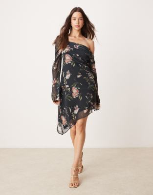 Dresses by ASOS DESIGN A staple event outfit Floral design Off-shoulder style Long sleeves Asymmetrical hem Regular fit