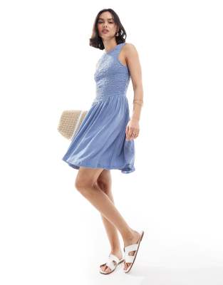 Επισκέψου το κατάστημα Asos για να δεις περισσότερες λεπτομέρειες και φωτογραφίες για το ASOS DESIGN crinkle shirred bodice mini dress with open back in denim blue. Για αγορά του ASOS DESIGN crinkle shirred bodice mini dress with open back in denim blue πρέπει να επισκεφτείς το κατάστημα Asos.