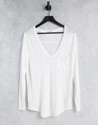 T-shirt by Free People Act casual Soft V-neck Chest pocket Long sleeves Relaxed fit