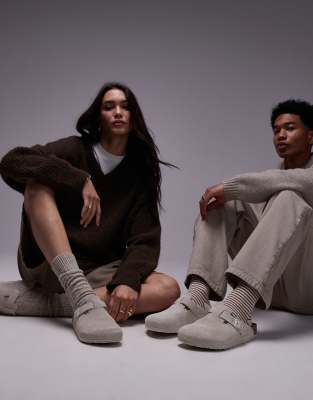 Επισκέψου το κατάστημα Asos για να δεις περισσότερες λεπτομέρειες και φωτογραφίες για το Birkenstock unisex Boston clogs in antique white suede. Για αγορά του Birkenstock unisex Boston clogs in antique white suede πρέπει να επισκεφτείς το κατάστημα Asos.