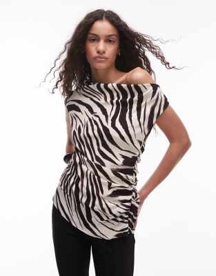 Tops by Mango Animal print One-shoulder style Short sleeves Slim fit